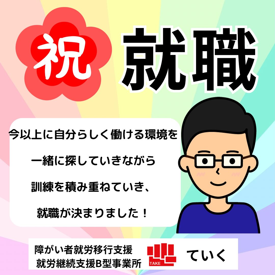 この度、ていくに通所されていた利用者さんが食品加工業への就職が決まりました🌸