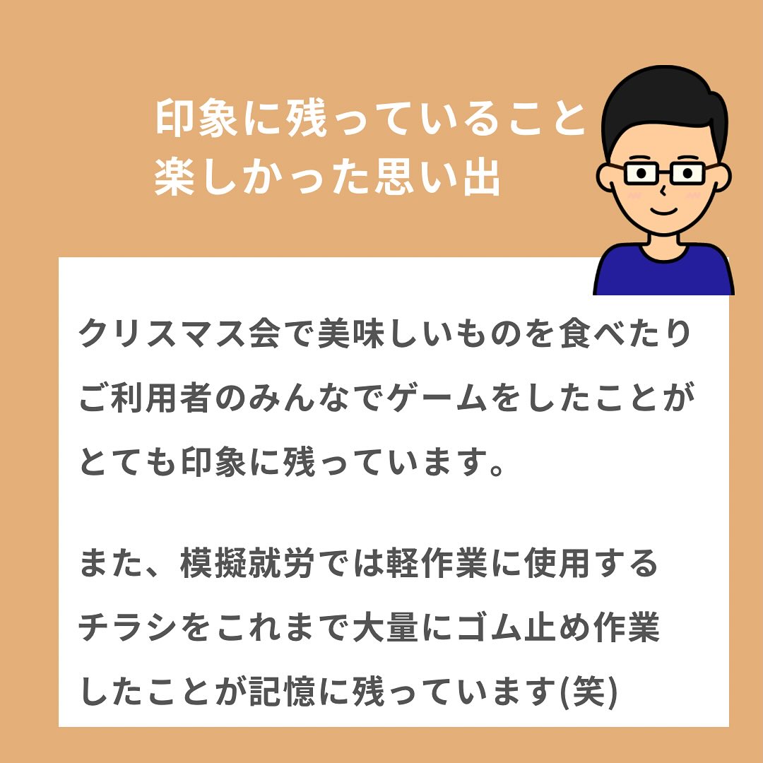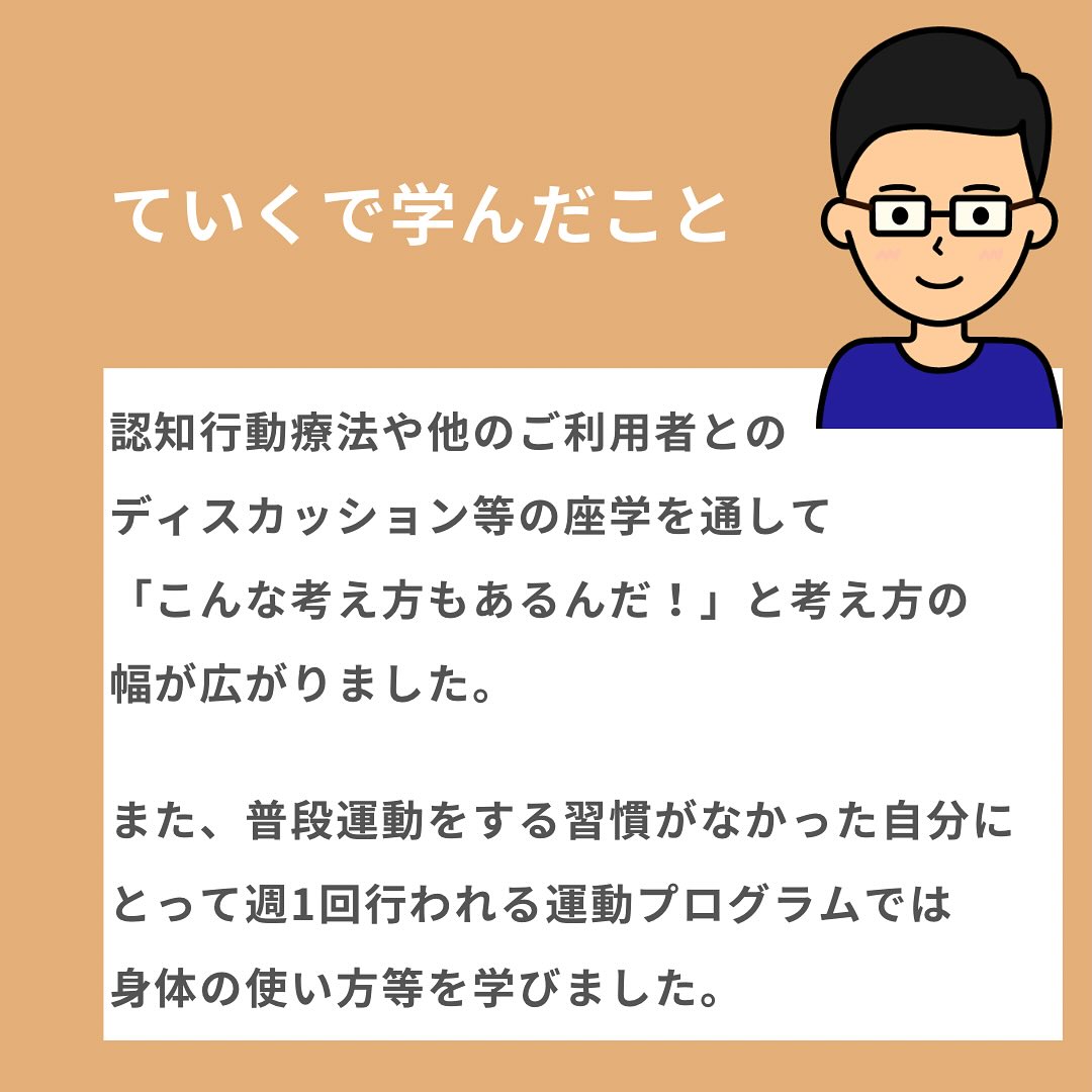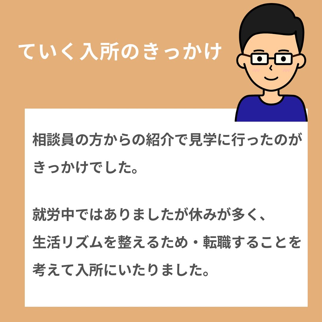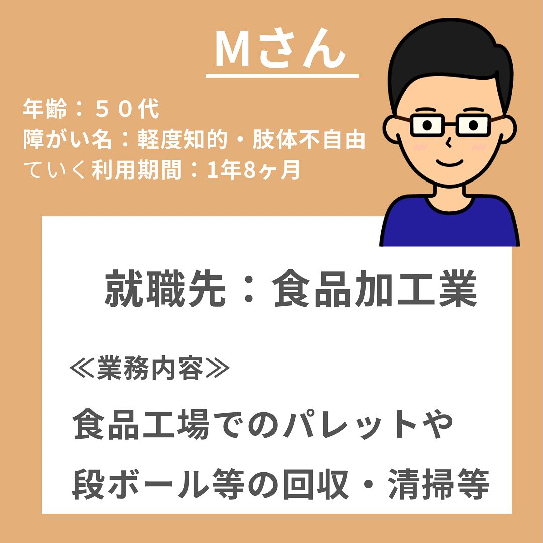 ていくの様々なカリキュラムを通して他者理解やビジネスマナー・言葉遣い等を学習していき、Mさんのペースで徐々に成長して今回転職先を見つけることが出来ました!